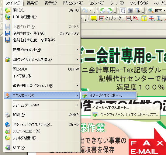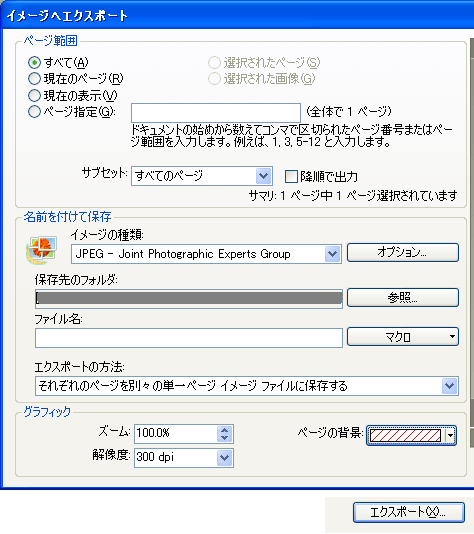 ファイル→エクスポート→イメージへエクスポート